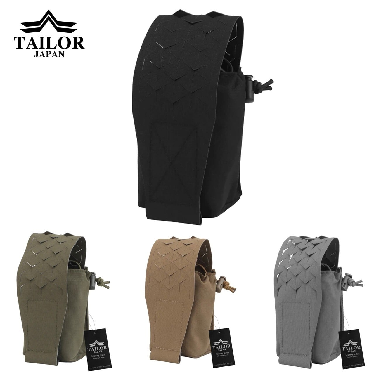 耐久性に優れた500Dナイロンをベースに、ストレスポイントを的確に補強。適度な厚みとしなやかさを持ち、ハードな動きにも追従します。背面はMOLLE/PALS対応で、プレートキャリアやデューティーベルトへの装着も容易。過酷な現場を想定した安心のスペックです。