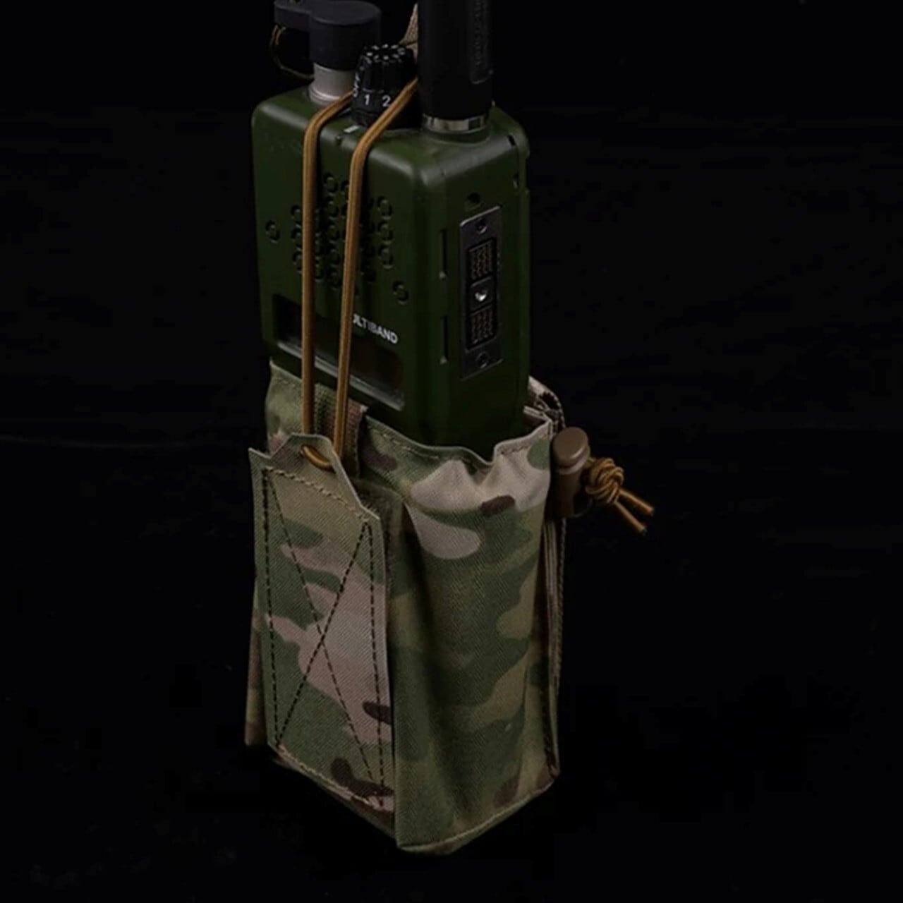 単なるマガジンポーチにとどまらず、無線機などの通信機器を収納するラジオポーチとしての運用も可能。フラップ上部にはコードを逃がせるスリットがあり、アンテナやケーブルを外に出したまま収納できるのが大きな利点。状況に応じて使い分けられる柔軟性が魅力です。