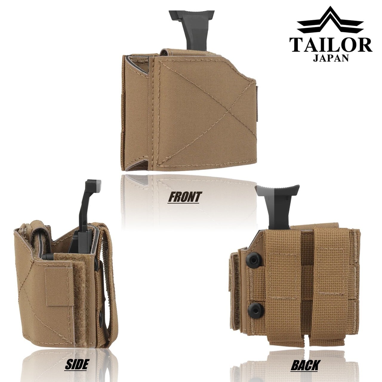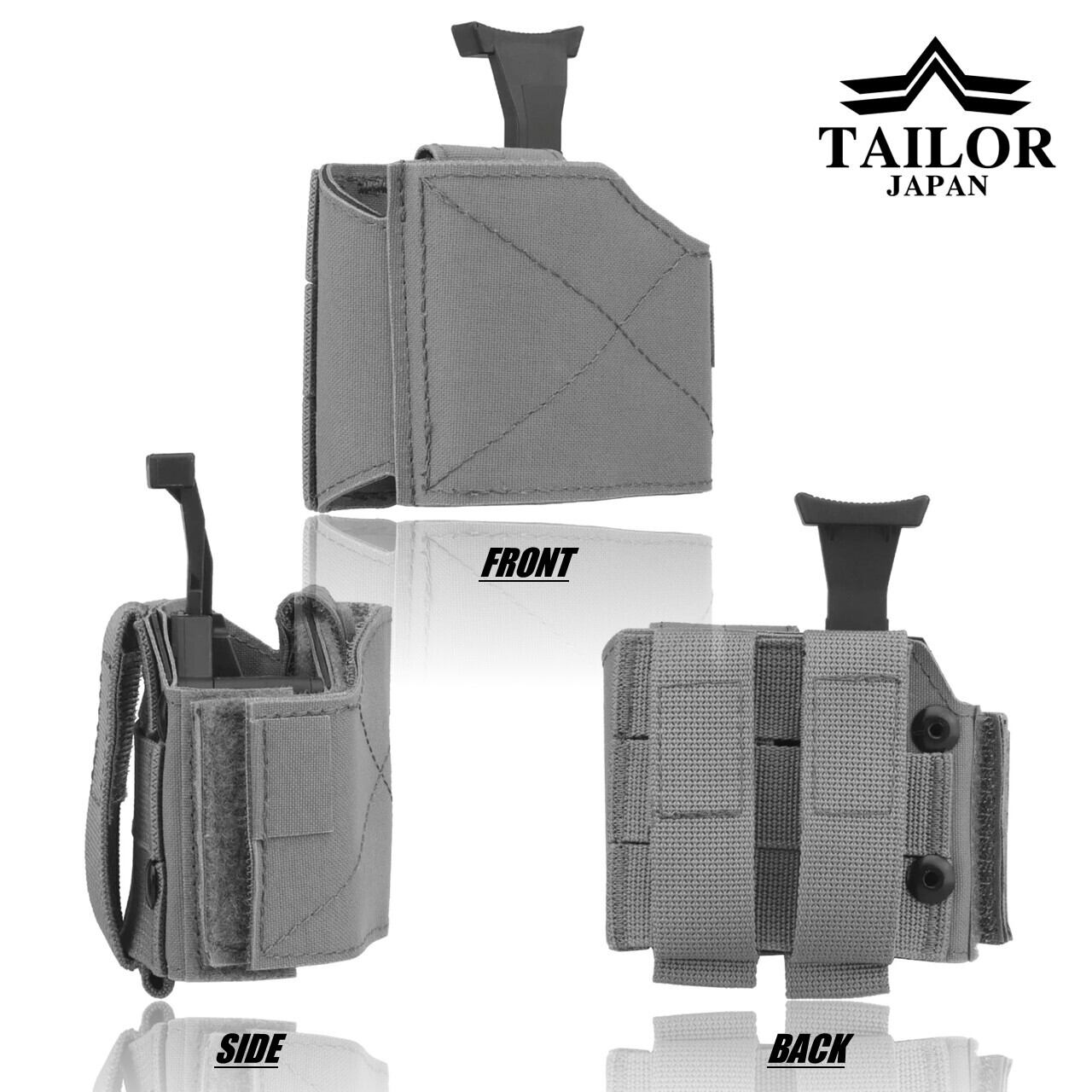 ・ベルクロ調整による固定式で、グロック、ガバメントシリーズ、リボルバーなどほとんどのハンドガンを収納可能です。