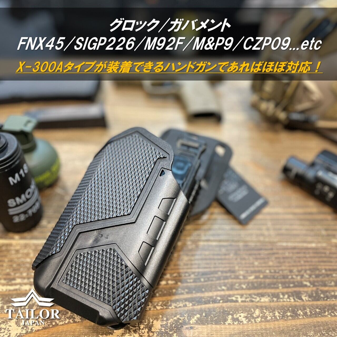 【TAILOR JAPAN】ハンドガンホルスター 多様な形状に対応 X-300Aタイプ ライト専用ホルスター 右利き用 37-X3MT-9W5R