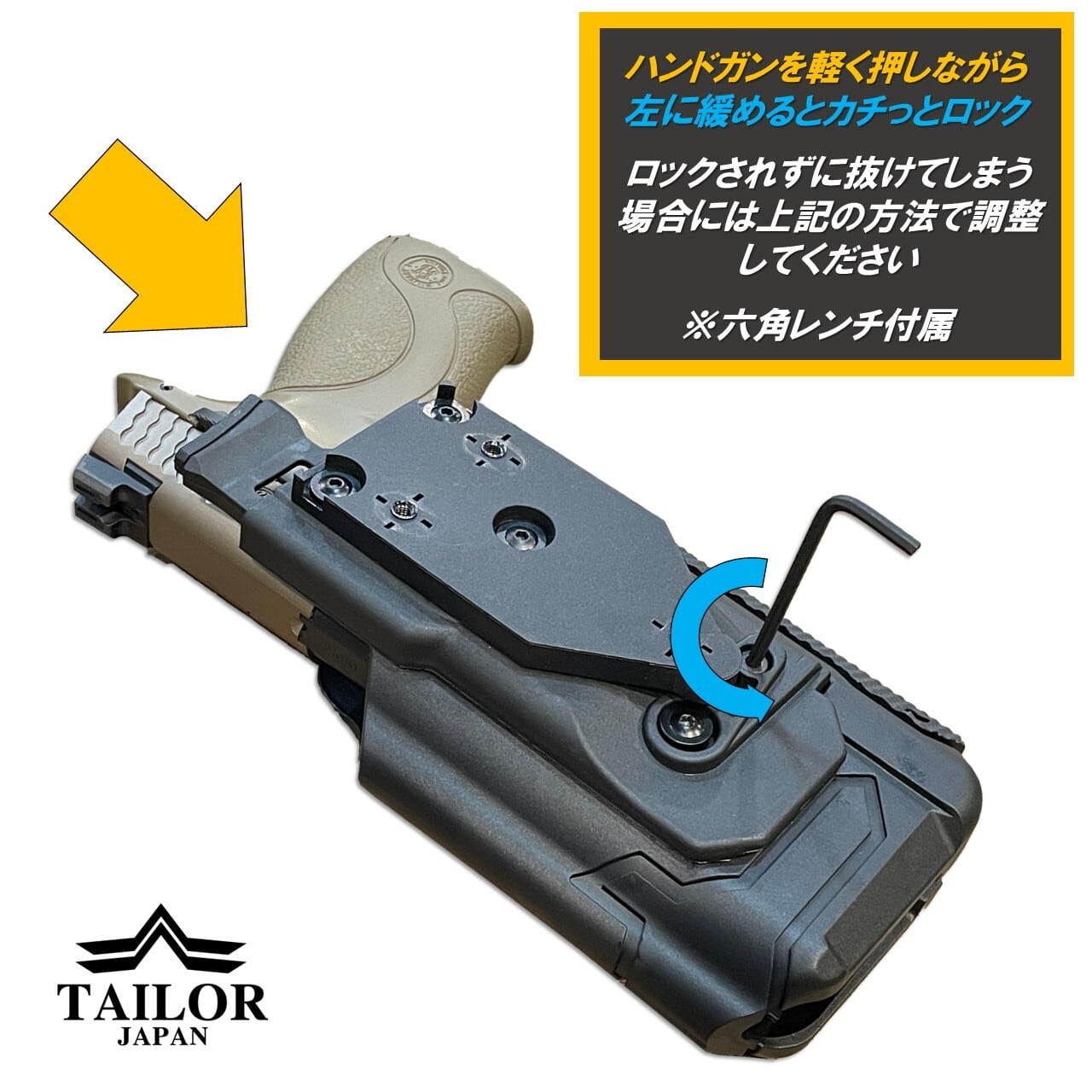 ・六角レンチでテンション調整ができるため、使用するハンドガンに合わせたホールド感を細かく追い込めます。
