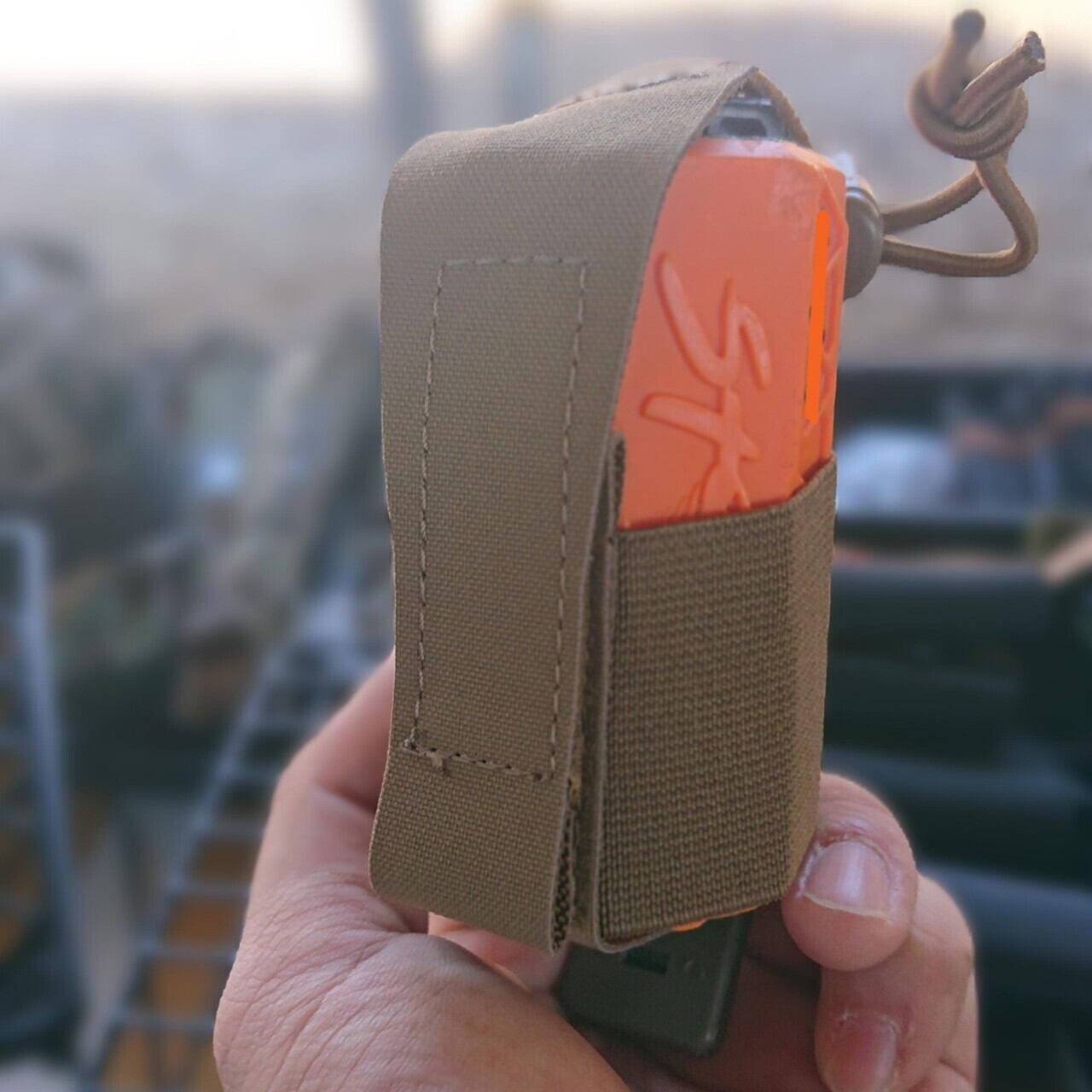 シンプルかつ実用性重視の設計で、フィールドでの扱いやすさを追求。確実な保持力とスムーズな取り出しを両立した、実戦向けグレネードポーチです。