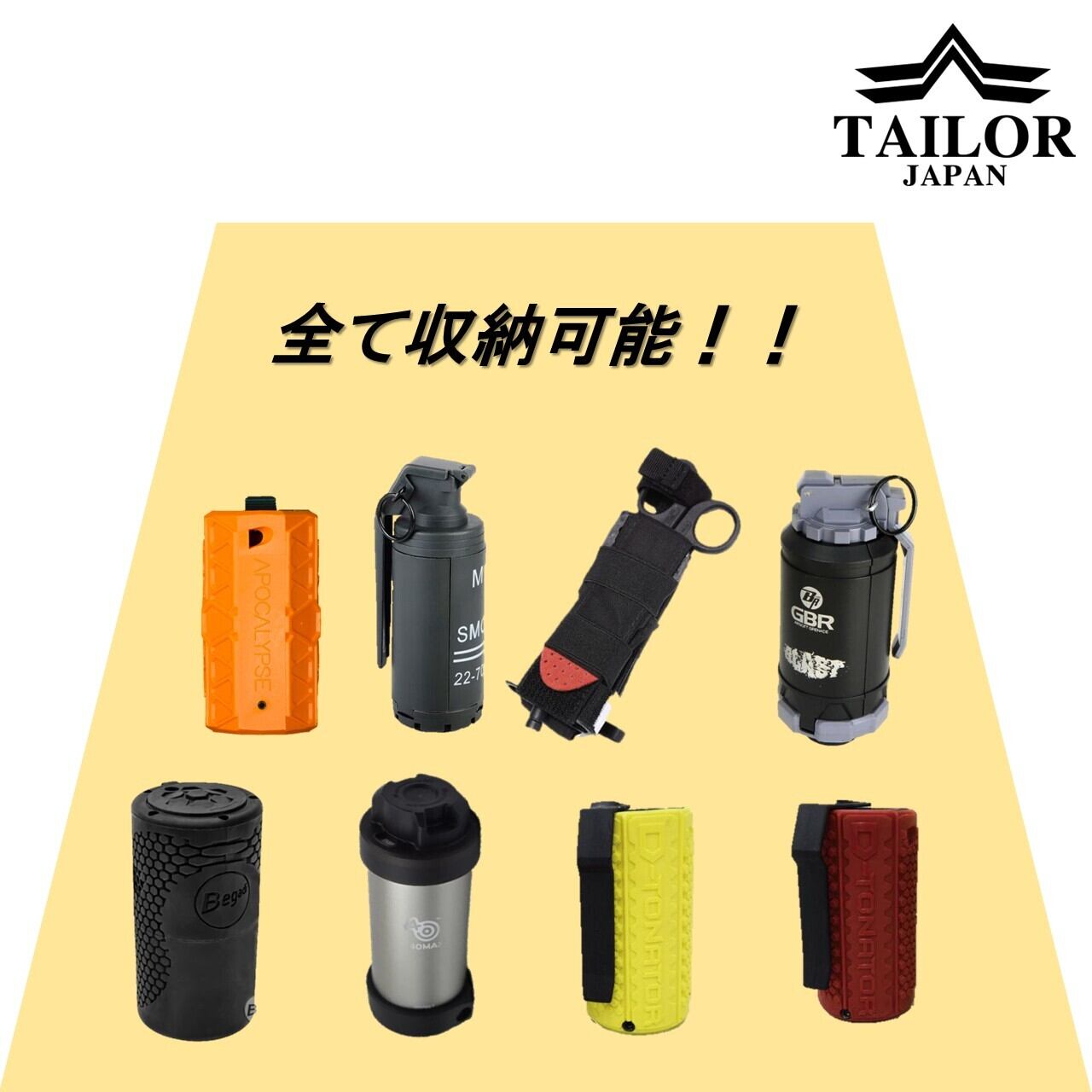 本製品は、各種ガスグレネード・スプリンググレネードに対応した汎用ポーチです。形状やサイズに差のあるグレネードや止血帯でも、確実に保持できる設計となっています。