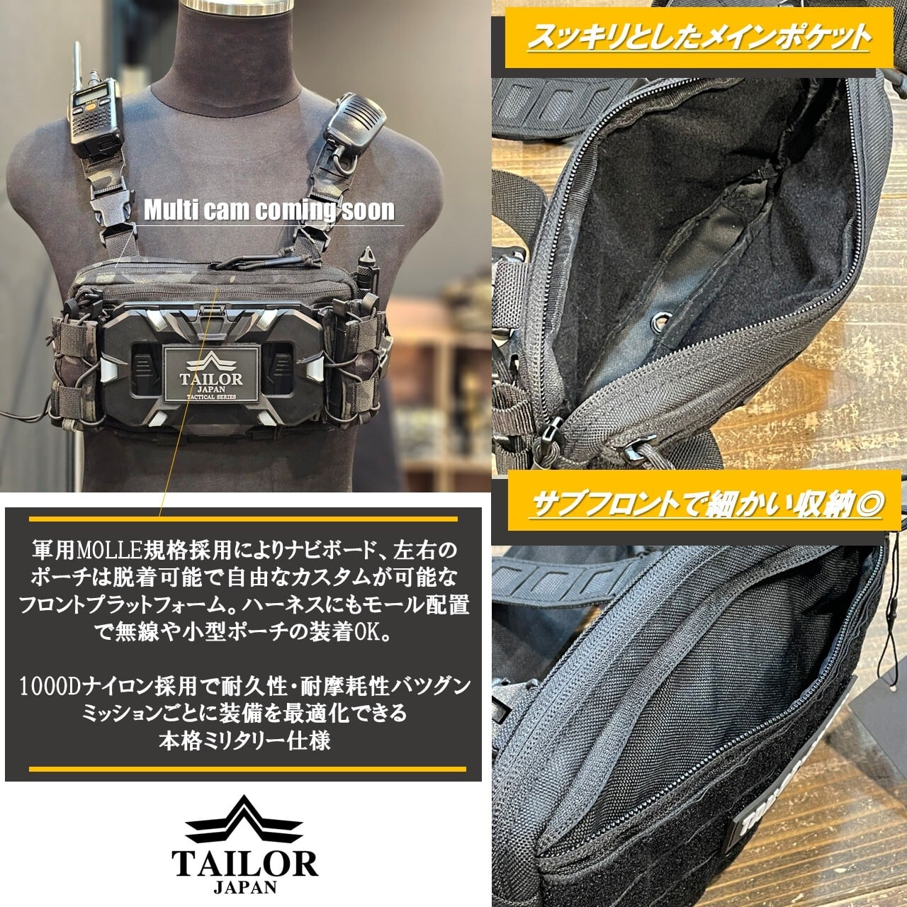 公式[TAILOR JAPAN] チェストユーティリティパック(マルチカム/マルチカムブラック) 両手が自由になる チェストバッグ フードデリバリー 釣り サイクリング カヤック 登山 ワークギア ミニマル装備 軽量ギア ナビボード付き ミルスペックナイロン仕様 チェストリグ S8-YMKB-AA3T