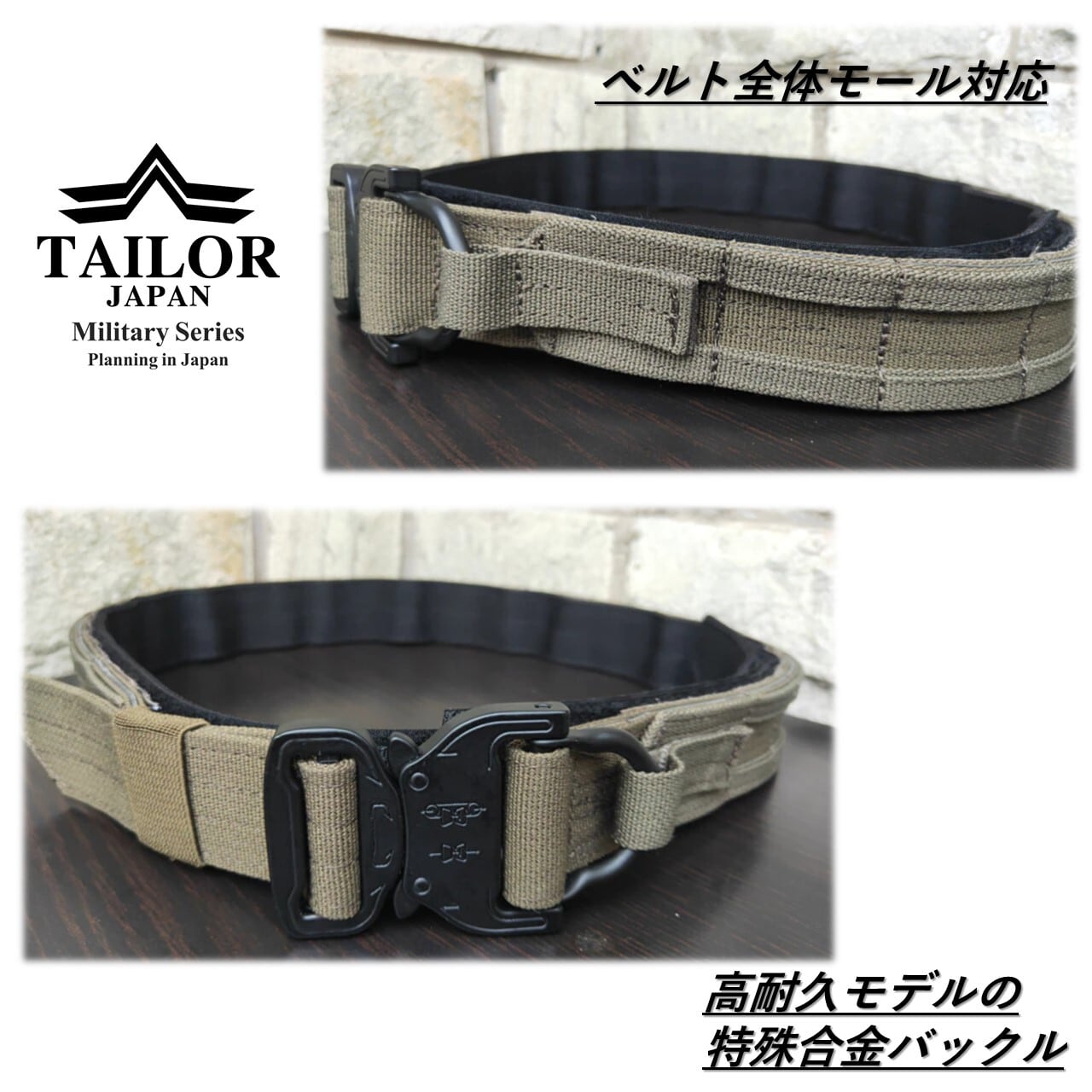 ベルト自体が2重構造になっており、モールと同じ幅でウェビングが2枚縫い付けられているので、2インチ幅のベルトそのものにポーチ類のモールを通して固定できる仕様になっております。