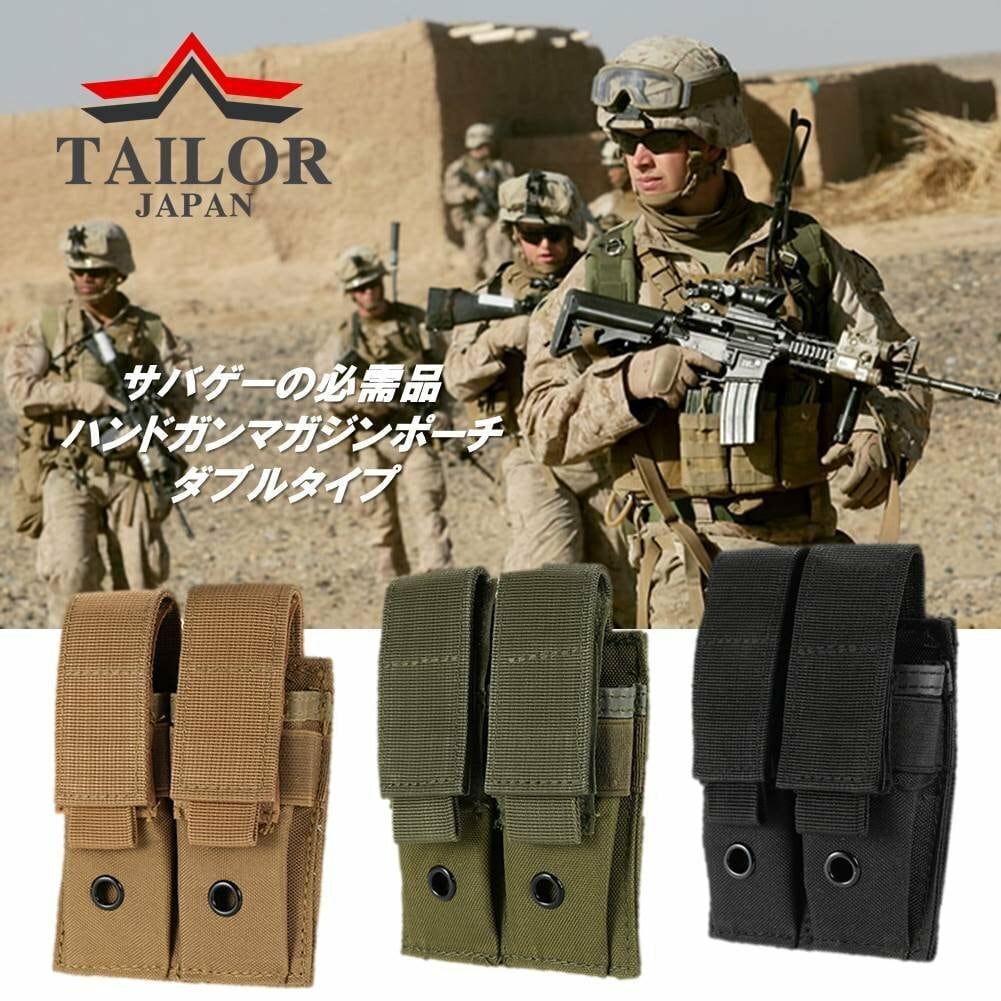 【仕様①】厳選した1000D強化ナイロンを採用。丈夫で軽量のハンドガン用ダブルマガジンポーチ。