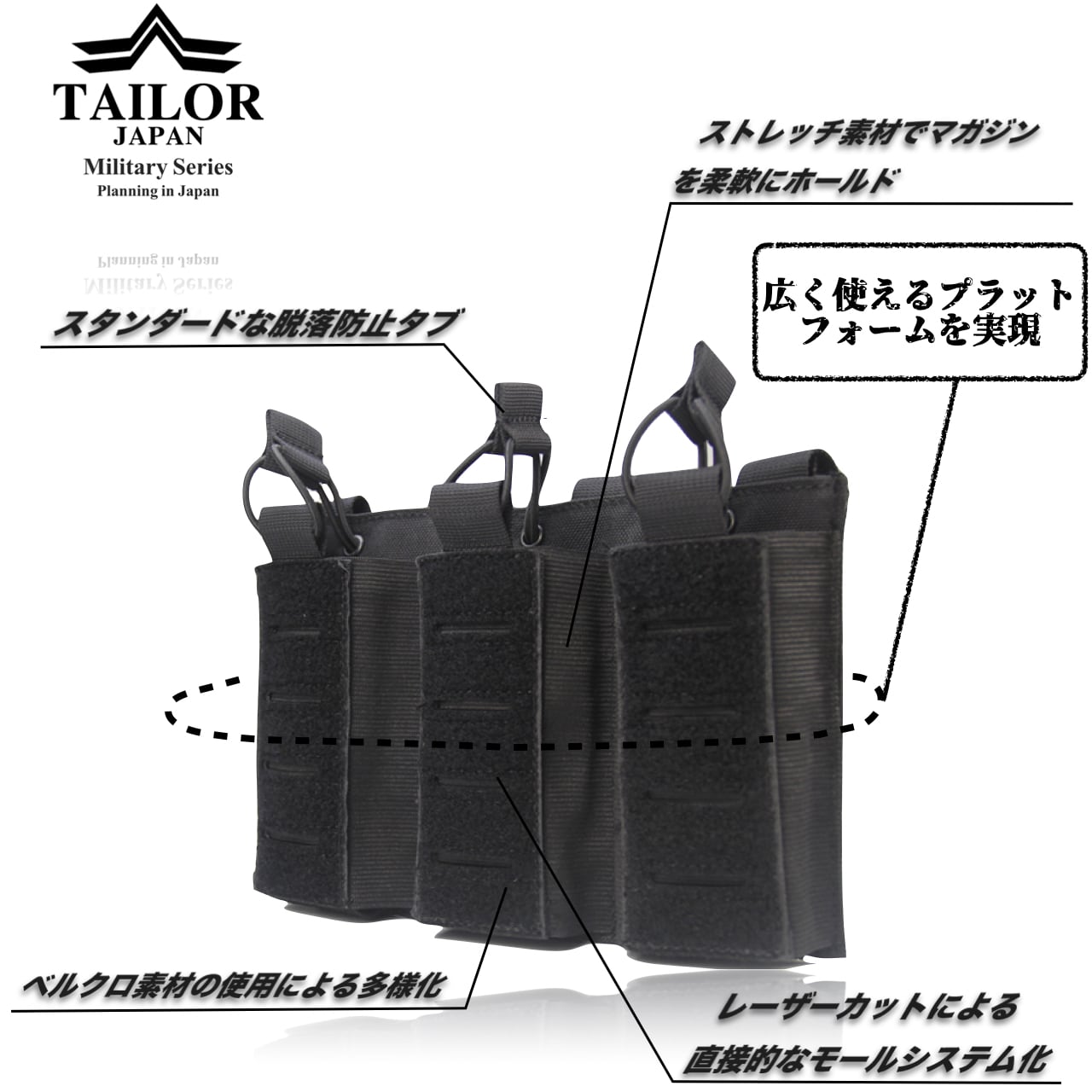 レーザカットにより生地を直接モールシステム化することで、極めて軽量でありながら拡張性に優れたマガジンポーチとなっております。