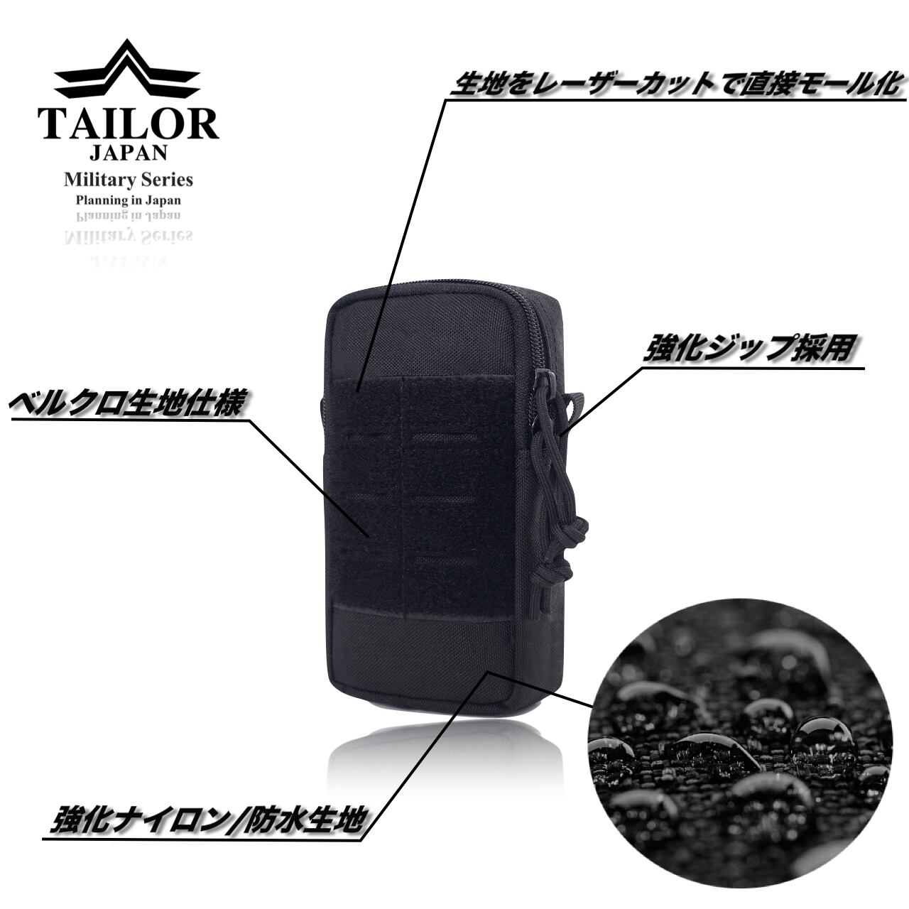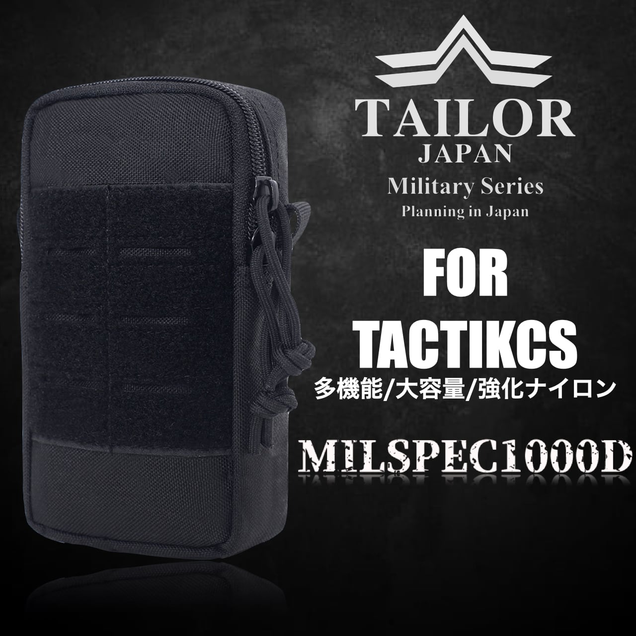 TAILOR JAPANナイロン製ポーチ。高品質、高強度の軍事規格の1000Dナイロンで織り込まれているため、あらゆる環境、シーンで安心して圧倒的にタフに使い込むことができます。