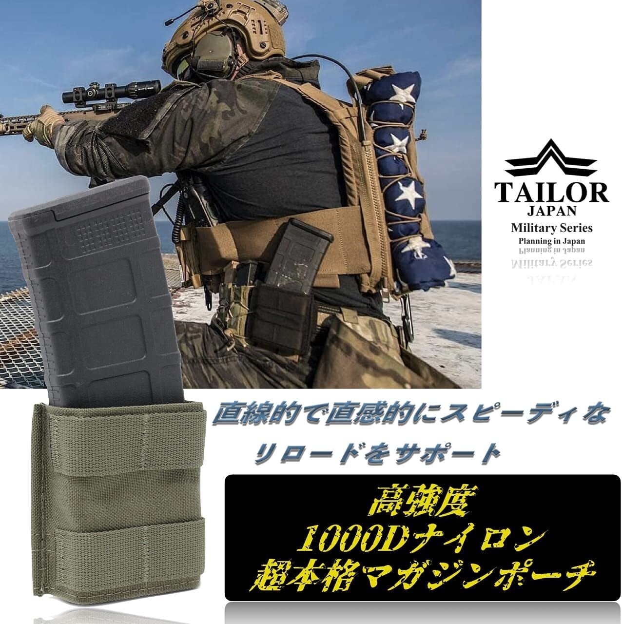 軍仕様の1000Dナイロンを使用しているため、半永久的に外部からの摩擦に耐えることができ、ゲーム中の積極的なアクションにも十分対応できる強度となっています。