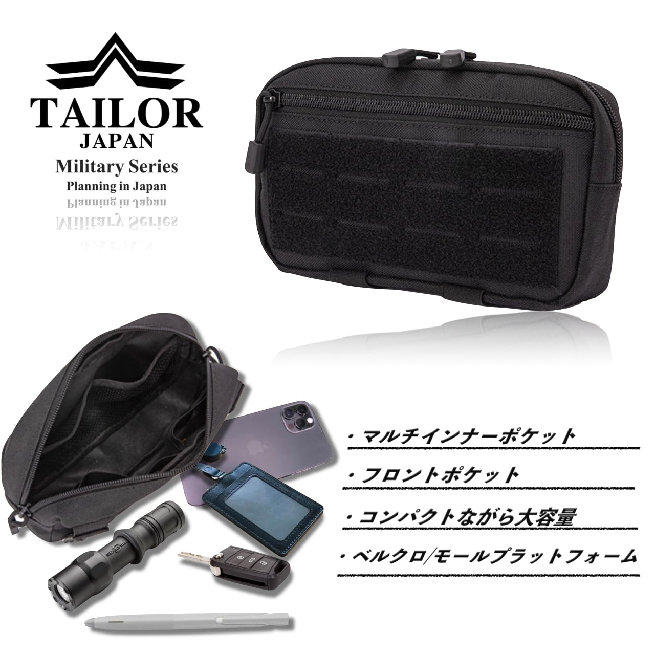スムーズに必要なツールを確認、取り出すことが可能でコンパクトながらも大容量なタクティカルポーチとなっています。