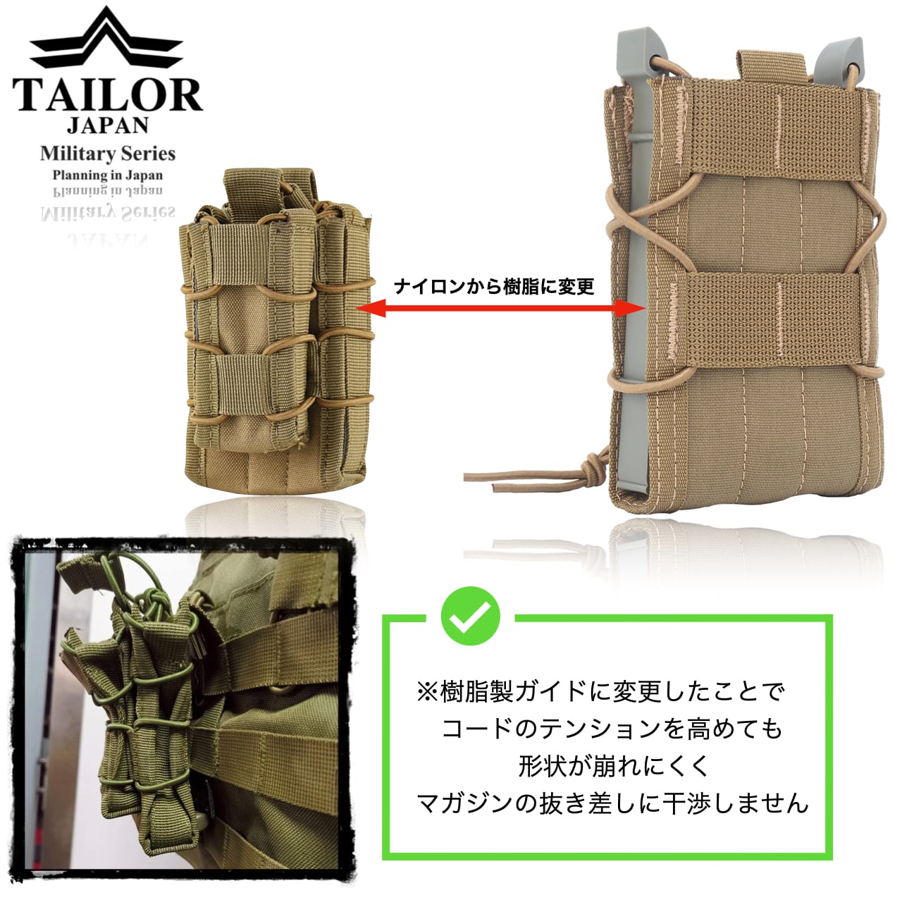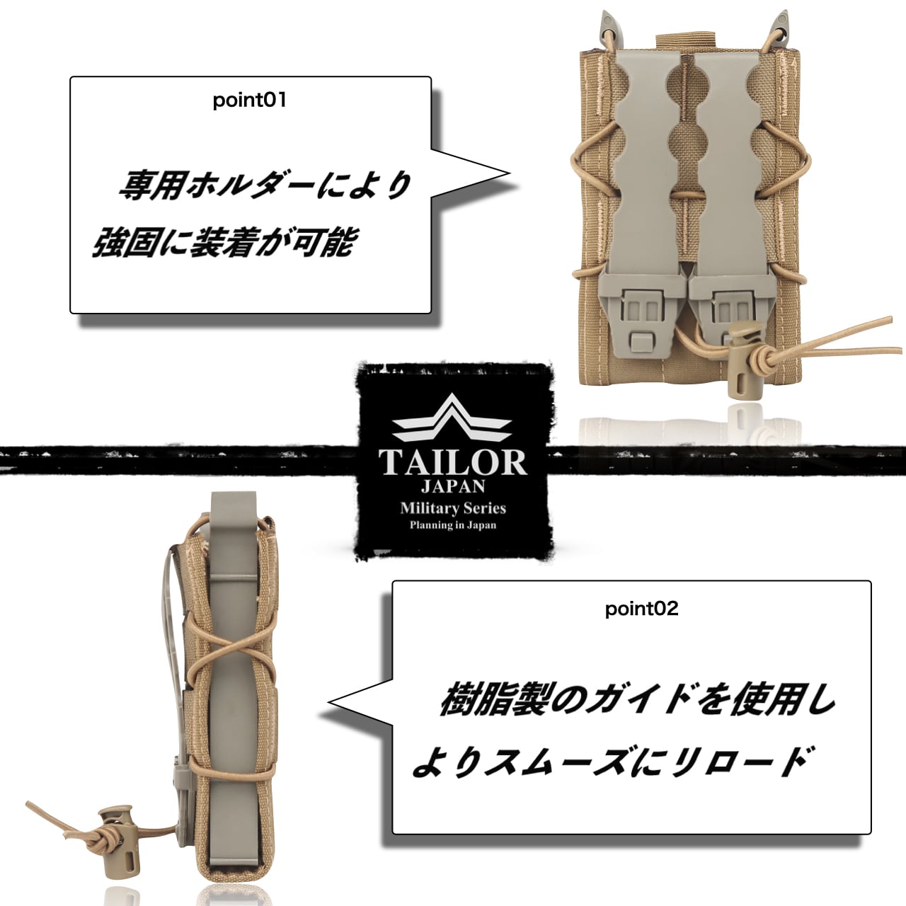 M4/M16、HK416、FN SCAR-Lなどの5.56mmマガジンやFN SCAR-H、HK417などの7.62mmマガジンまで、ほぼ全てのマガジンサイズに対応したマガジンポーチ。