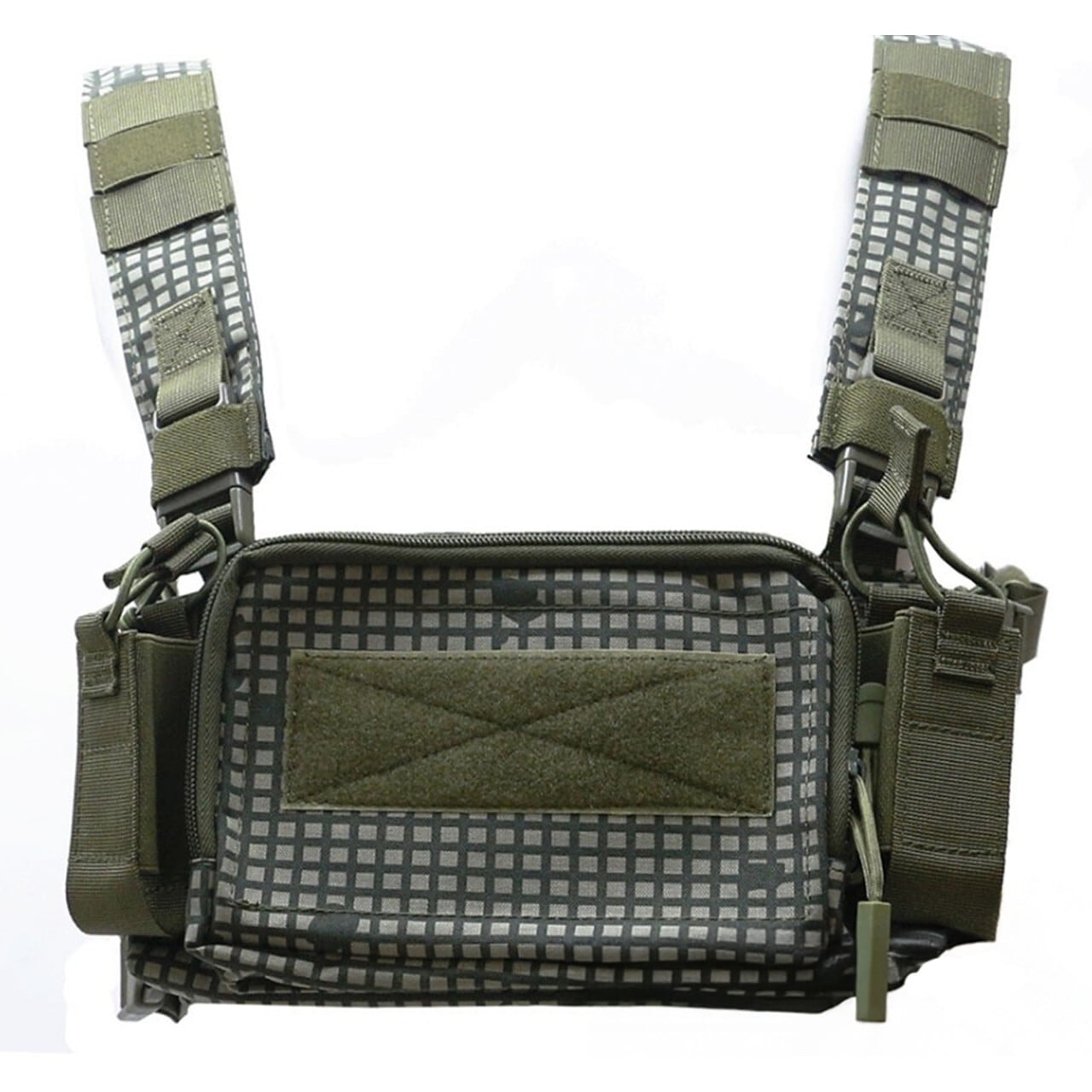 従来のものに要素を加えファッション性を含めたコンセプトで設計された、サバイバルゲーム用のチェストリグ。